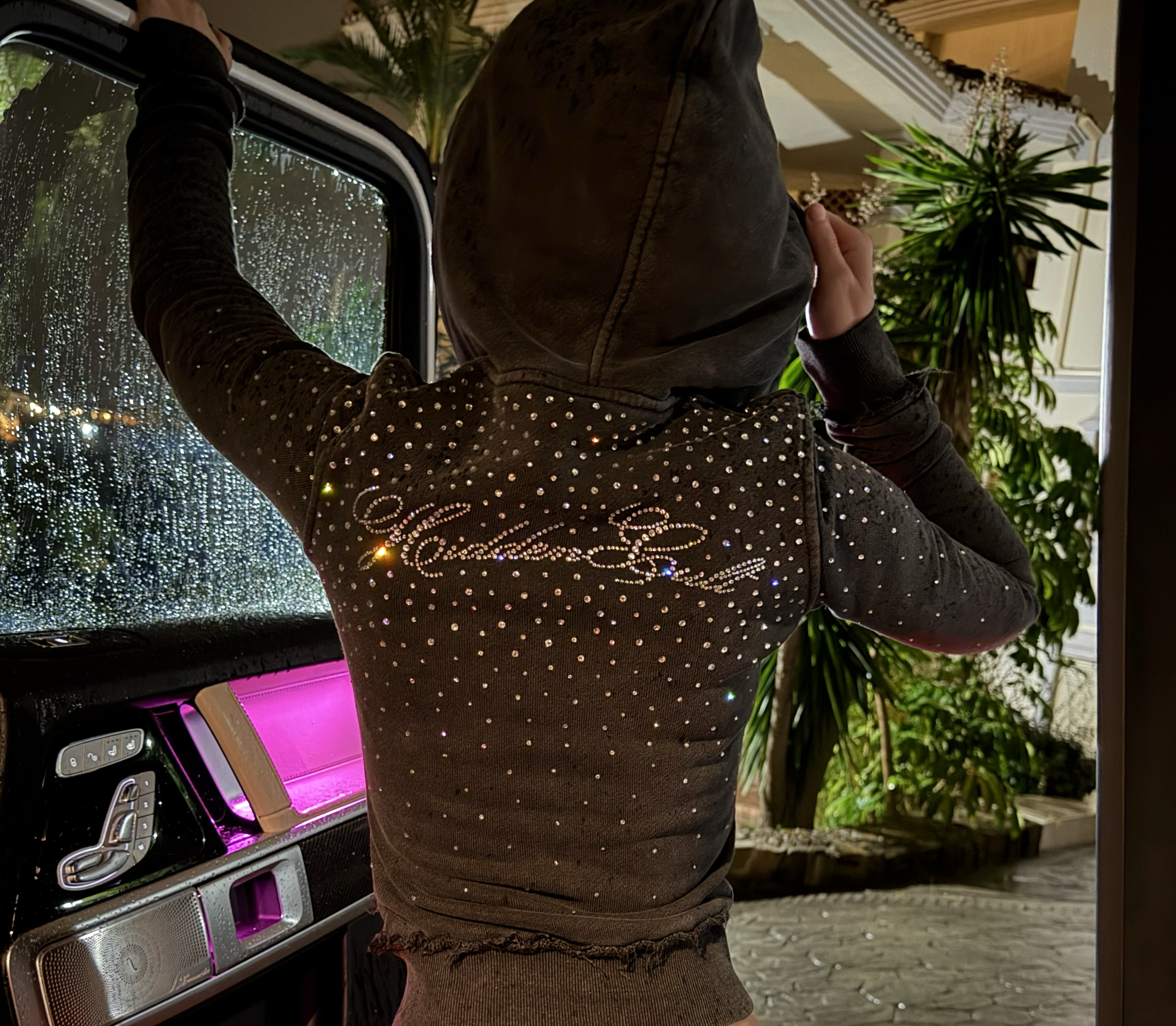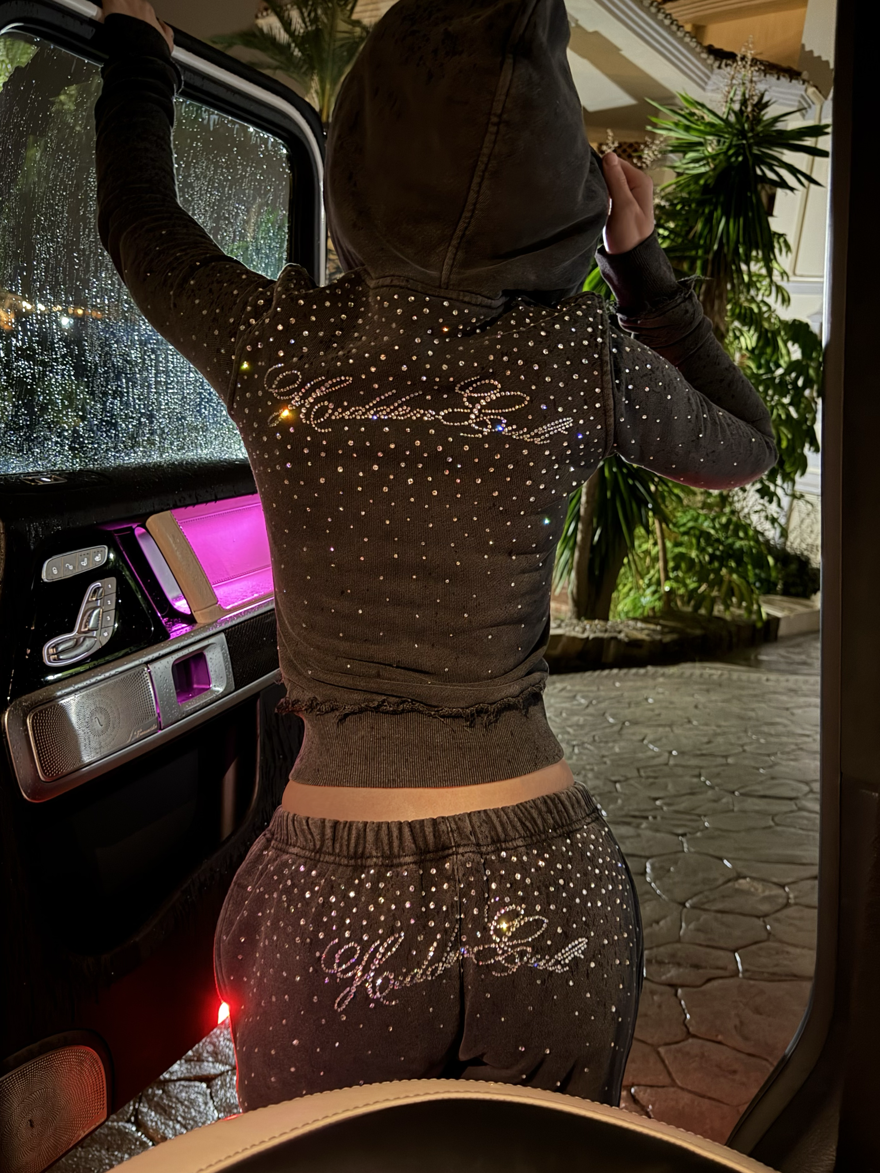 SIGN UP - Rhinestone Black Wash Sweatsuit Set
